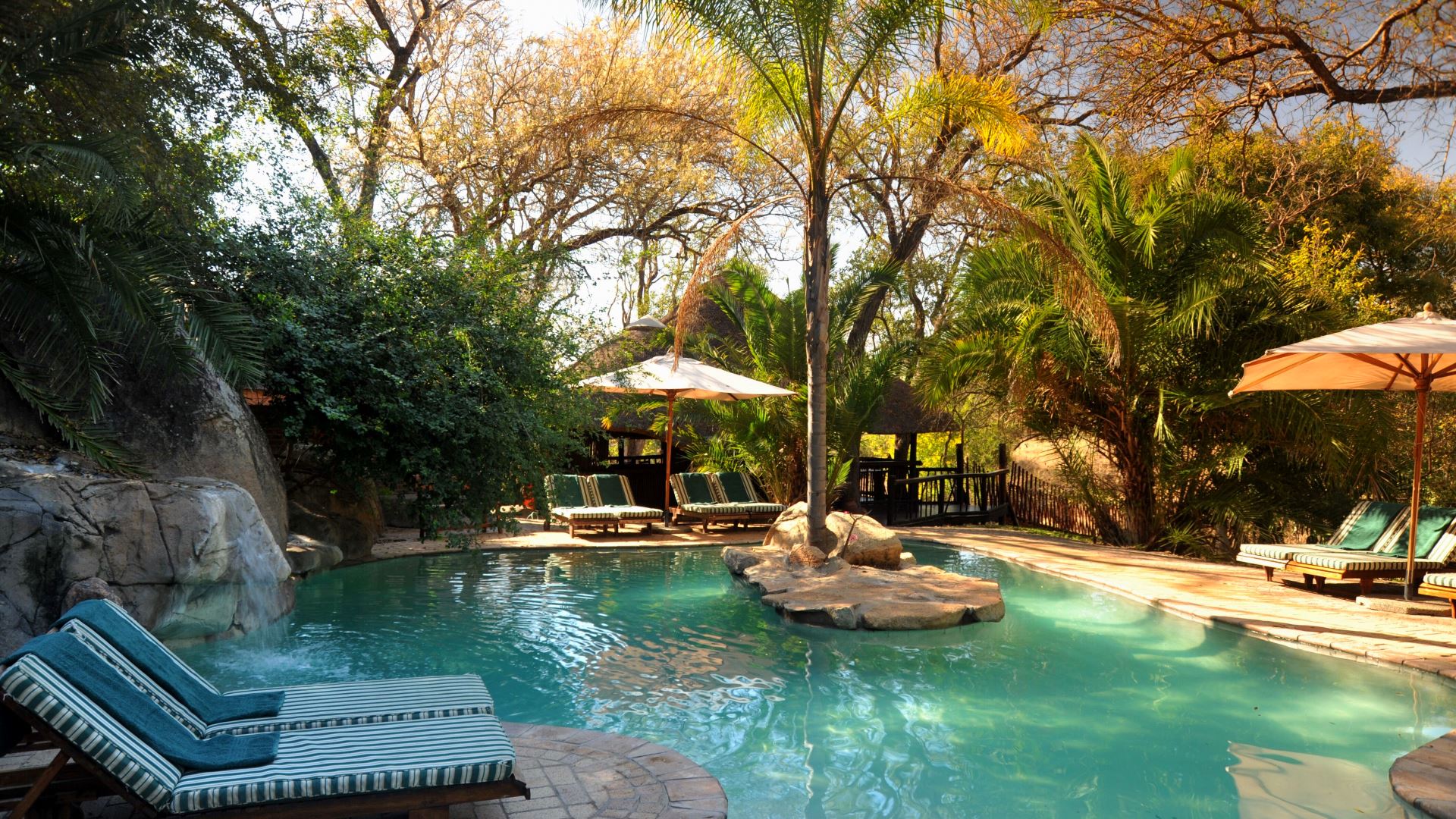 The lodge has 8 comfortable Safari chalets, 1 Leadwood suite with plunge pool and 2 x Luxury Makubela suites with plunge pools. Set amongst green lawns and shady trees. In between drives, guests can enjoy the pool and the hide.