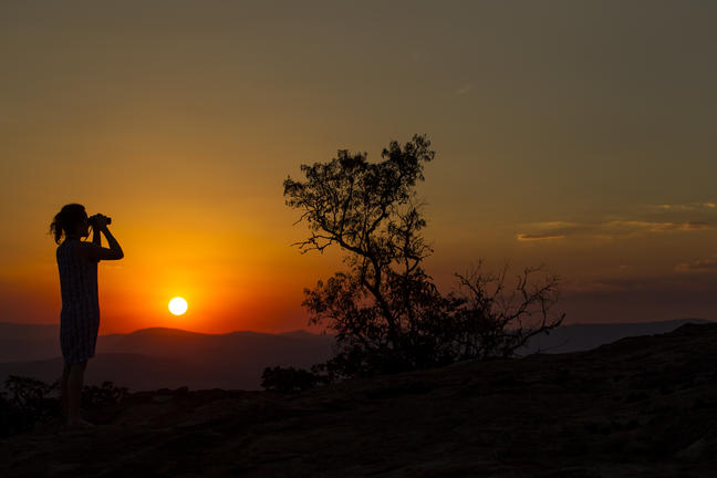 Morning rise to a beautiful sunrise over the granite boulders with breakfast at the Main Lodge