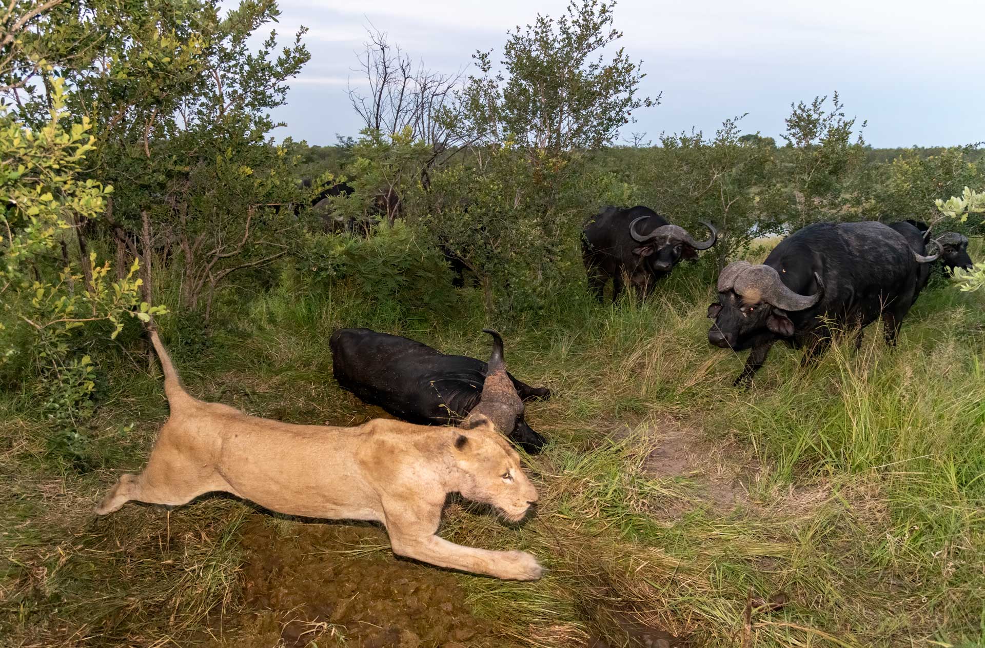 Late afternoon/night photo safari game drive with a Mid-way stop for sundowners - We take this break dependant on the situation using the golden light at dusk first before returning back to Idube Safari Lodge by night fall