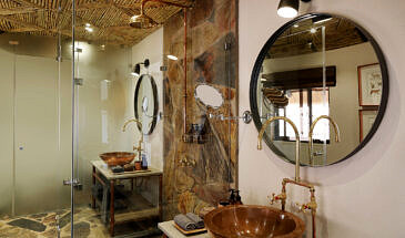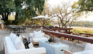 Every aspect of MalaMala Camp and Sable Camp is designed to appreciate and enjoy the view of the surrounding wilds. Pathways wind their way along the perimeter of the camp to reveal individual ochre colored units tucked into the greenery which flanks the Sand River. Massive trees and rolling green lawns are filled with birdsong, with the occasional antelope or elephant which seeks the succulence of greenery.